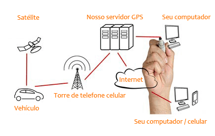 O módulo GPS averígua a posição (carro, moto, frota de veículos, etc.) e os encaminha para o processador. Este processa estes dados e os transmite para o módulo GSM. A partir daí, estes dados são transmitidos para o nosso servidor GPS. Nossos servidores analisam esses dados, os avaliam, armazenam os dados e alertá-lo por e-mail, se necessário, e, opcionalmente, também via SMS. Estas informações são então apresentadas na nossa plataforma GPS num mapa, que é o que você vê como portal de localização em seu desktop ou em seu smartphone / tablet.